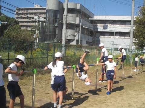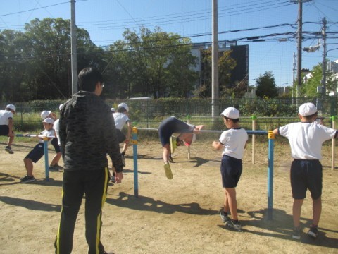 4年 学習のようす 1 公開日 2025/10/23 更新日 2025/10/23 4年生 10月23日(木)1組の体育です。鉄棒「足かけ回り」の技に取り組んでいます。そのあと,3年4組のリレーを観戦し,応援をしていました。 +6