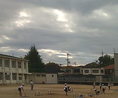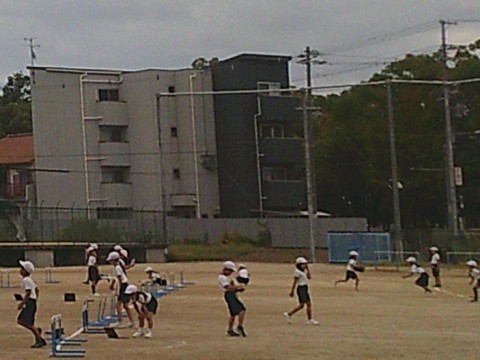 3組の体育では,ハードル走の練習に取り組んでいました。