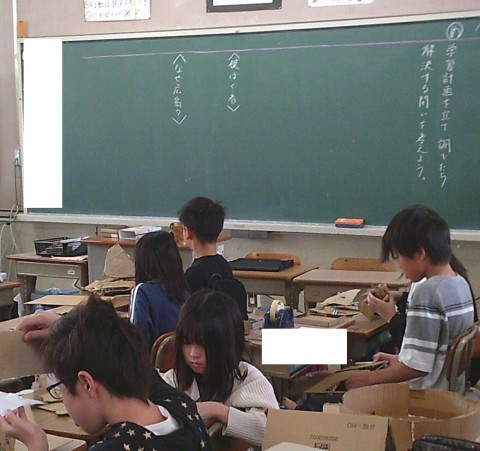 1組の図工では,段ボールで制作活動に取り組んでいました。