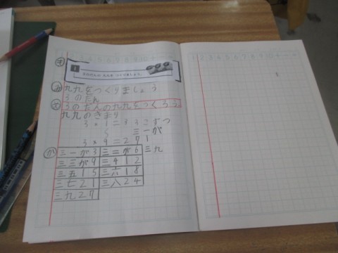 2年 学習の様子3 公開日 2025/10/27 更新日 2025/10/27 2年生 10月27日(月)3組の国語では,新出漢字を学習していました。算数は「かけ算」の学習です。めあては「3のだんの九九を作りましょう」です。 +6