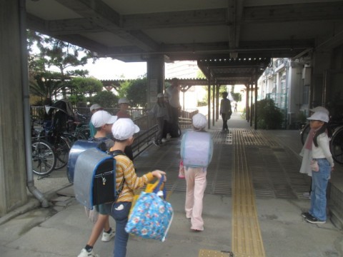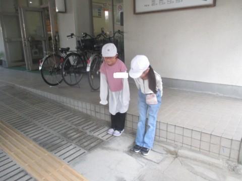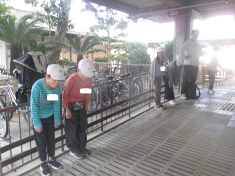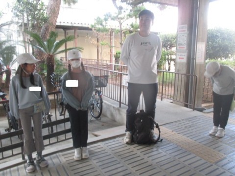 たてわり班でのあいさつ運動です。今日は3年2組で活動している班が正門であいさつ運動をしています。