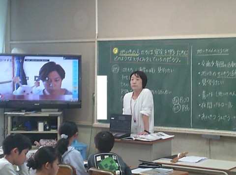 1組の社会では,地域の人は安全を守るためにどのような取り組みをされているか学習していました。