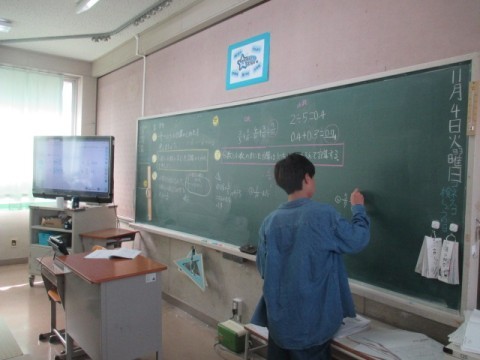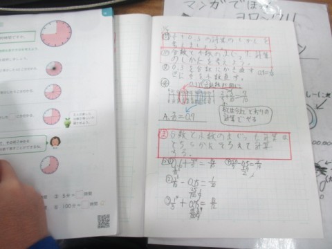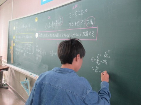 今日は「分数と小数の混じった計算のしかたを考えよう」に取り組んでいます。