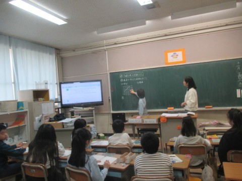 4年 学習のようす 3 公開日 2025/11/05 更新日 2025/11/05 4年生 11月5日(水)3組の算数,少人数指導の授業のようすです。今日のめあては「方眼を使って作図しよう」です。 +7