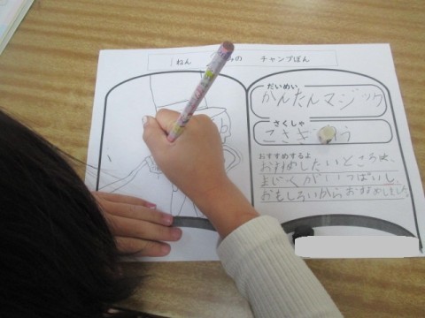 2時間目の国語では「ビブリオバトルのカードをつくろう」に取り組んでいます。