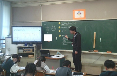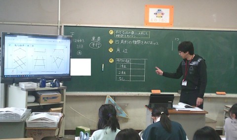 1組の算数では,四角形の種類分けに取り組んでいました。