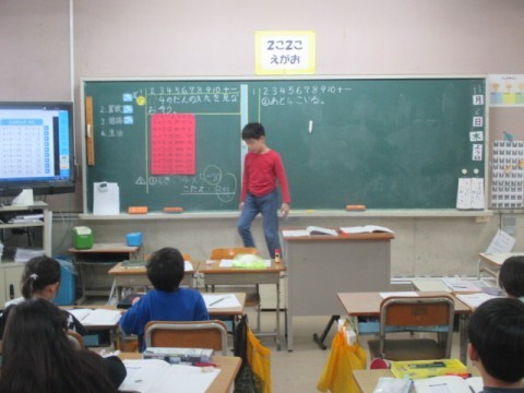 今日のめあては「4のだんの九九をみなおそう」です。