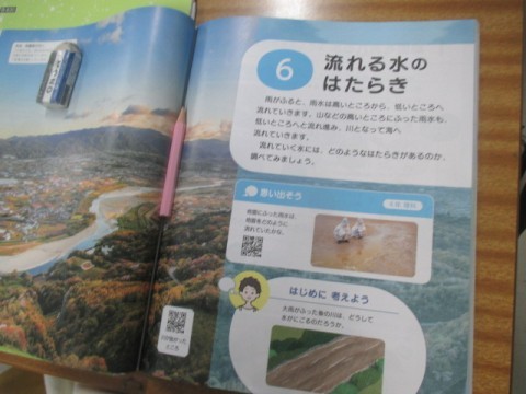 今日は,「大雨が降った後の川は,なぜ,にごるのだろうか」について考えます。デジタル教材の動画を見ていました。