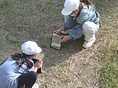 5時間目の理科「光の性質」では,太陽の光を鏡を使って集めて温度が上がるかの実験をしていました。