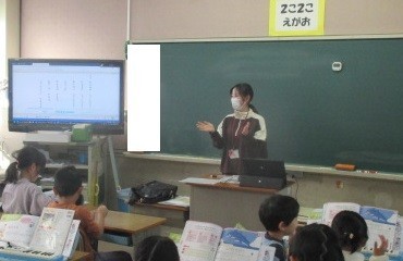 2組の音楽では,いるかはどんぶらこの曲を歌いながらリズムうちの練習をしていました。