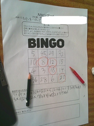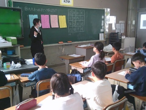 2年 学習のようす 4 公開日 2025/11/11 更新日 2025/11/11 2年生 11月11日(火)5時間目は2組の算数「かけ算」の学習です。今日は初任者研究授業でセンターから専門指導員の先生が来られています。めあては,「九九を使ってビンゴゲームをしよう」です。 +7