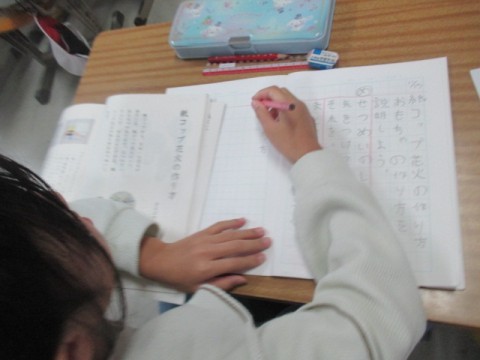 3組の国語「紙コップ花火の作り方」について学習していました。