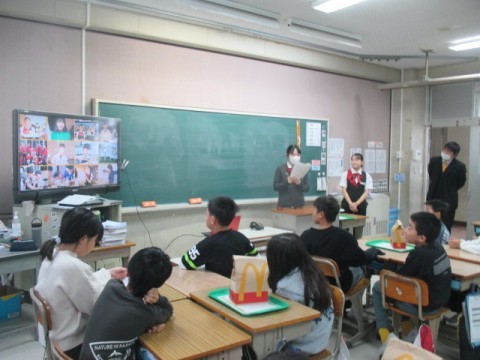 今日は「企業による学びの応援プログラム」で「マクドナルド」の方にお越しいただき,出前授業を行いました。