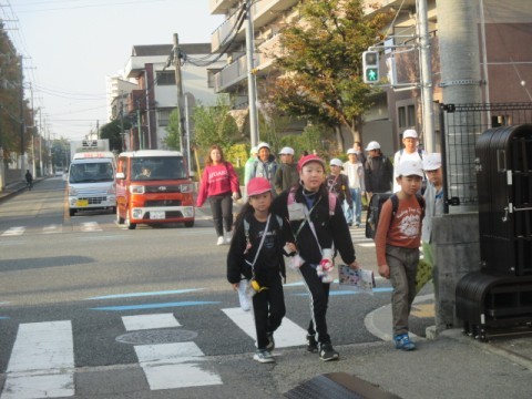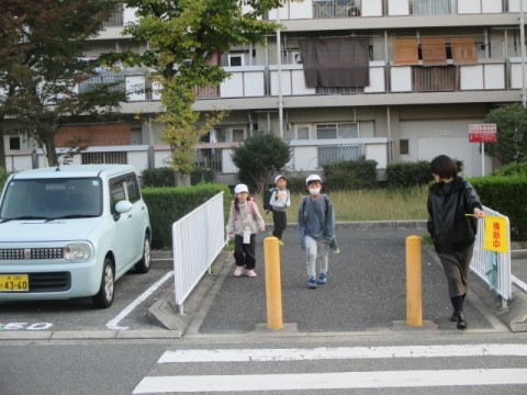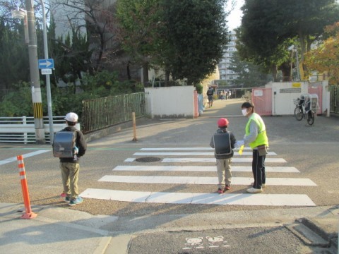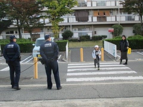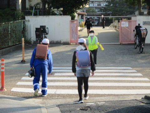 今朝の登校時には,警察の方も見守り活動をしてくださっています。