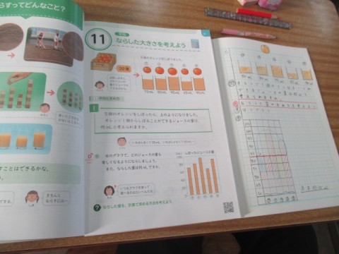 5年 学習のようす 2 公開日 2025/11/14 更新日 2025/11/14 5年生 11月14日(金)2組の算数「ならした大きさを考えよう」の学習です。今日のめあては「ならした量の求め方を考えよう」です。 +6