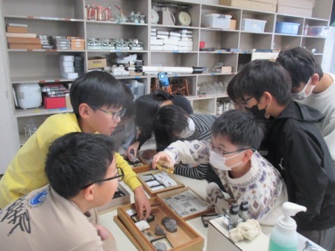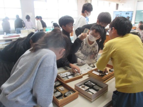 また,休み時間には,化石の標本をみんなで見ていました。(最後の写真,2枚です)