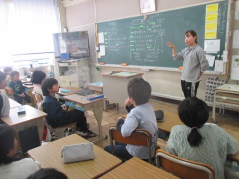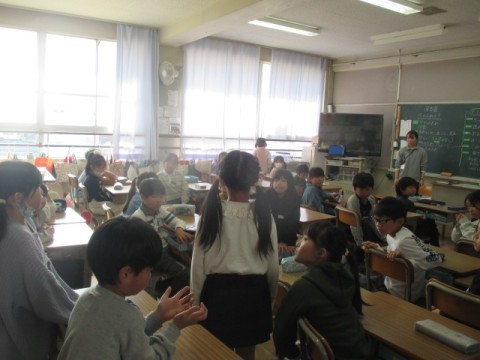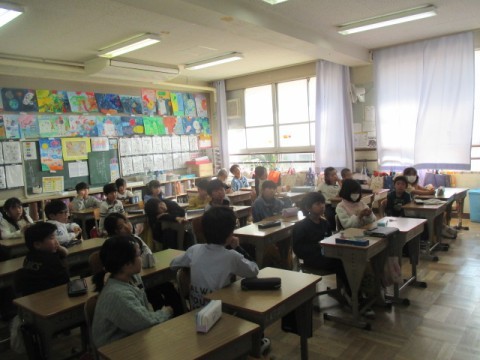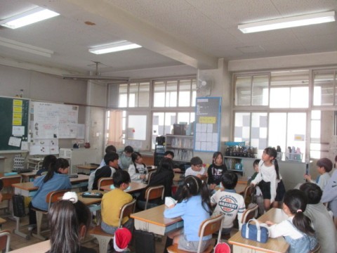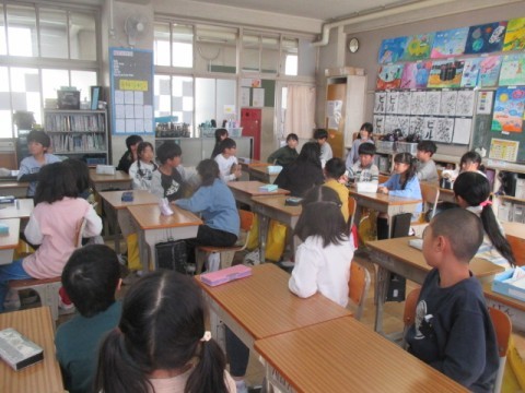 「なんのために?」保育園はあるのかを意見を出し合っています。そのあと,「やりたいこと」について考えていました。