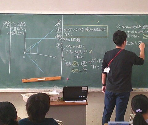 3組の算数では,比例のグラフを読み取る学習に取り組んでいました。