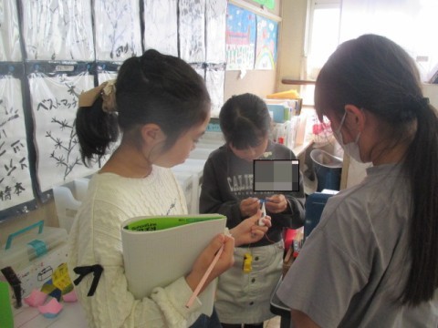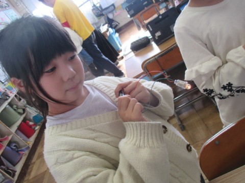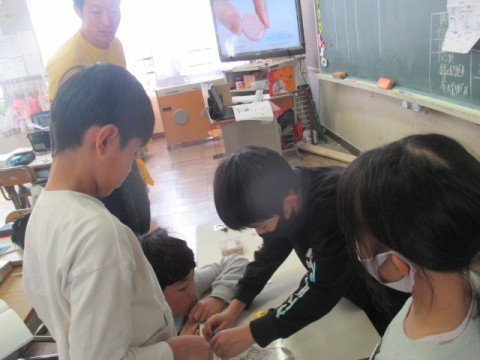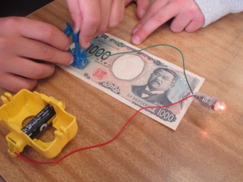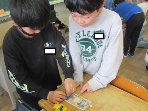 3年 学習のようす 4 公開日 2025/11/17 更新日 2025/11/17 3年生 11月17日(月) 2組の理科「電気であかりをつけよう」の学習です。今日のめあては「電気を通すものと通さないものを区別する」です。実験キットの「あかりとじしゃく」を使って豆電球がつくかつかないかを確かめていました。「1000円札の3Dホログラムは電気を通すねん。」見せてくれました。すごい発見ですね。先生が「1000札,しまっていいか~。」といっていました。先生の私物ですね。(笑) +7
