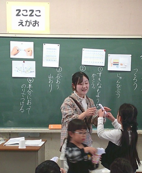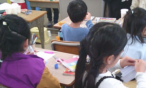2組の国語では,紙コップ花火の作り方について学習していました。