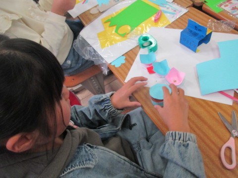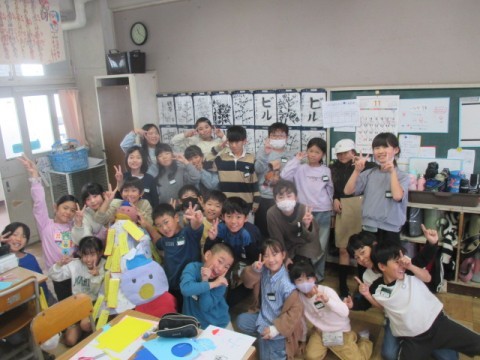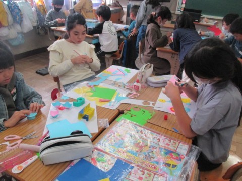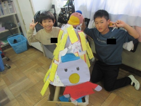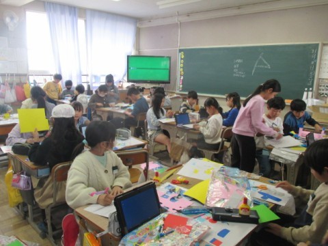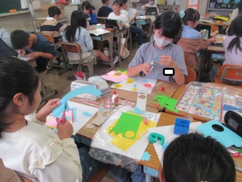 3年 学習のようす 4 公開日 2025/11/18 更新日 2025/11/18 3年生 11月18日(火) 4組の図工「うごいて楽しいわりピンワールド」です。キットを使って思い思いの作品を作っています。教室には,「いもたろうツリー」がありました。みんなで3年4組のクリスマスツリーを作ったそうです。クラスの合言葉に「みんなちがって,みんないい!」ちなんで,「ツリーは緑でなくても紫のツリーがあってもいい!」と教えてくれました。みんなで記念撮影です。 +7