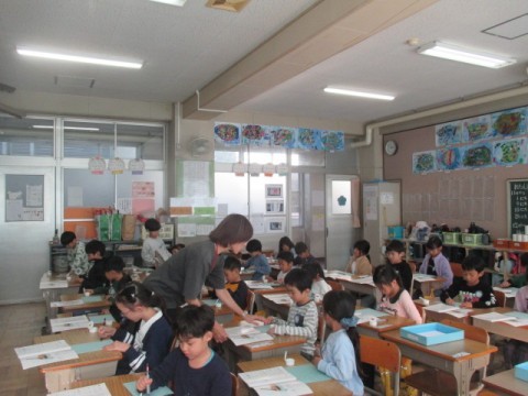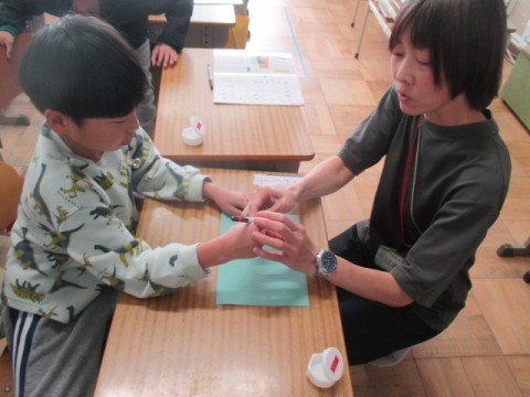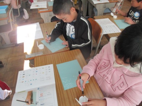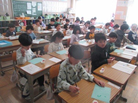 1年 学習のようす 3 公開日 2025/11/19 更新日 2025/11/19 1年生 11月19日(水) 3くみの「かきかた」の時間です。今日は「水書」に取り組みます。まずは,水筆の使い方を練習します。「背すじ,ピタン」「足ピタ」「おなかとせなかはグー一つ」と合言葉をみんなで確認しながら書いていました。 +5