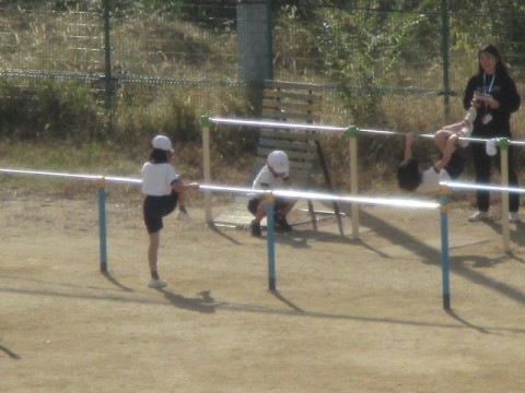 鉄棒とラインポートボールに取り組んでいます。