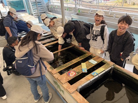 6年修学旅行34 公開日 2025/11/21 更新日 2025/11/21 6年生 鳥羽水族館に到着しました。ここからはグループ行動です。ラッコを鑑賞するのに、30分待ちの行列ができています。生き物とのふれあいコーナーでは、タコを触ることができます。 +5