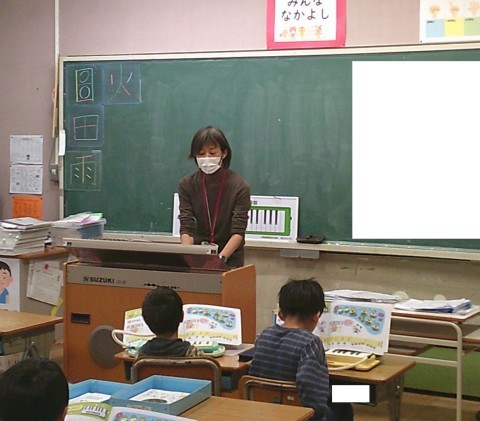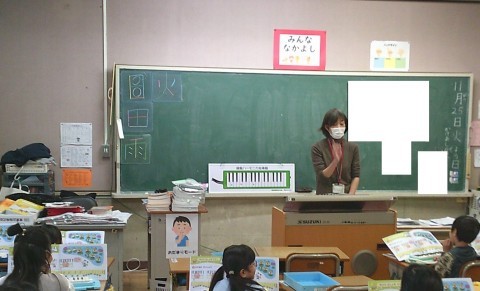 3組の音楽では,かえるのがっしょうという曲の学習をしていました。