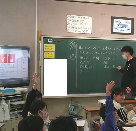 1組の社会では,工場で働く人々のことを考えてどのような工夫がされているのかを学習していました。