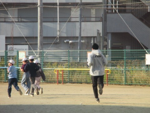 子どもたちも先生もかけあしをがんばっています。