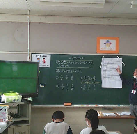3組の算数では,分数の大きさについて考える学習をしていました。