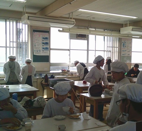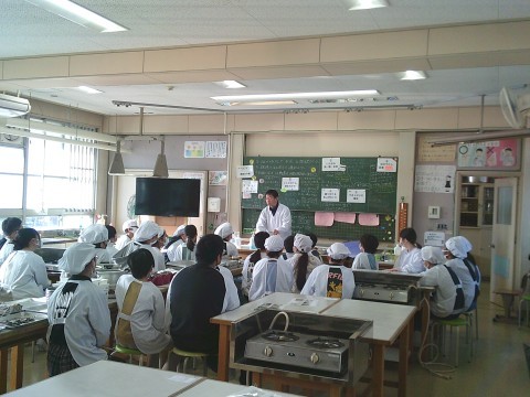 3組の家庭科では,ベーコンポテトについての調理実習に取り組んでいました。