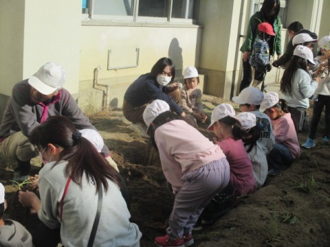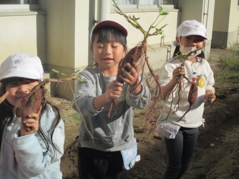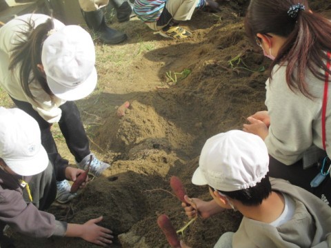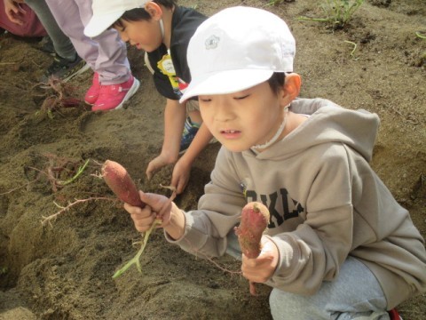 2組のサツマイモ掘り体験のようすです。