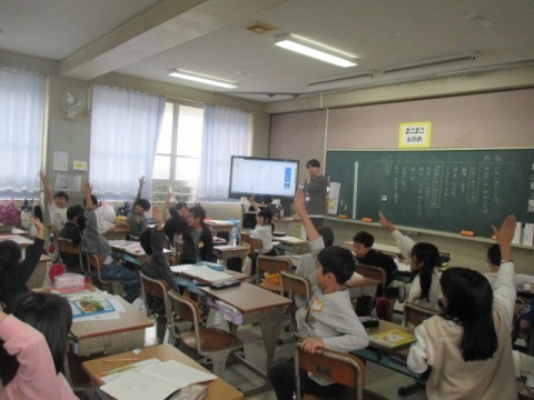 3組の国語「にたいみのことば」や「はんたいのいみのことば」の学習です。