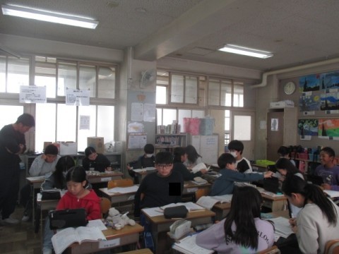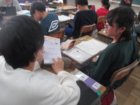6年 学習のようす 3 公開日 2025/12/02 更新日 2025/12/02 6年生 12月2日(火) 3組の算数です。黒板に「チームけテぶれ」と書いてあります。「どんな意味?」と尋ねるとけ・・計画テ・・テストぶ・・分析れ・・練習と行く意味があるそうです。「比例と反比例のテストで100点を取るために苦手を見つけて克服する」ことが今日のめあてです。タブレットのアプリを使って分析し,練習問題に取り組み,答え合わせをするなど,一人ひとりが学習に取り組んでいました。 +7
