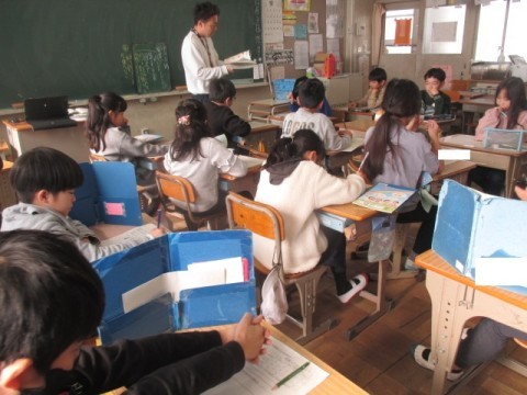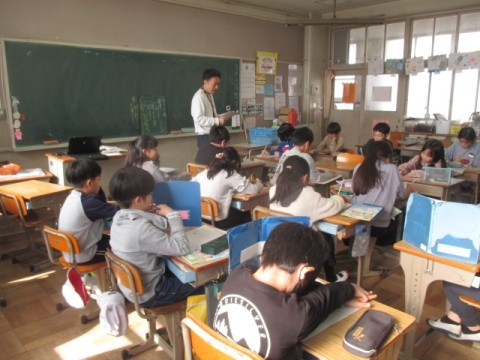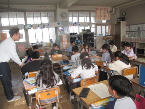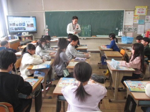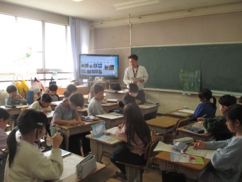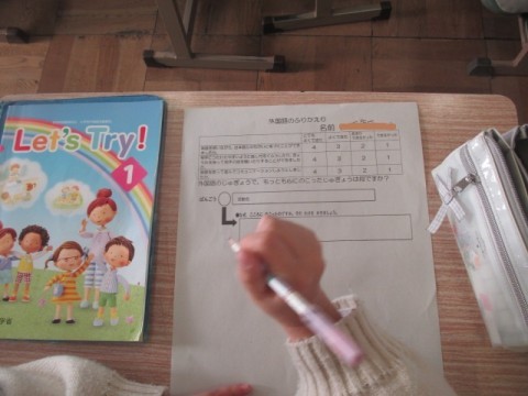 4組の外国語活動では,今までの外国語活動のふりかえりをしていました。