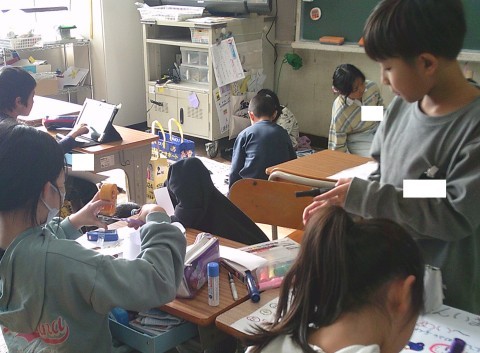 3組の総合では,なかもずこども園に訪問するときの準備に取り組んでいました。