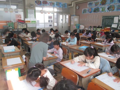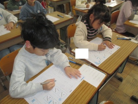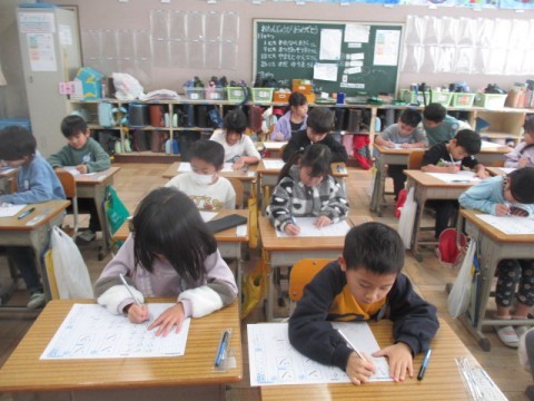 1年 学習のようす 3 公開日 2025/12/03 更新日 2025/12/03 1年生 12月3日(水) 3組の国語「かきかた」の学習です。今日は,カタカナの学習「にているじ」のワークシートに取り組んでいます。「シ」と「ツ」,「ン」と「シ」の練習をしています。 +5