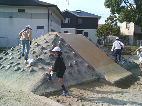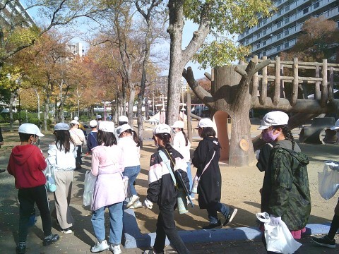 「大好きなかもず!町や人」の学習で,2日(火)に1組は「GKB(ゴミ,カラス,バイバイ)」をテーマにして梅町公園へ行きました。