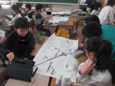 4年 学習のようす 3 公開日 2025/12/04 更新日 2025/12/04 4年生 12月4日(木) 3組の総合「防災」の学習です。今日は,「はんで協力して防災マップを作ろう」に取り組んでいます。タブレットに記録した結果から,見やすく,わかりやすいマップを作ります。 +3