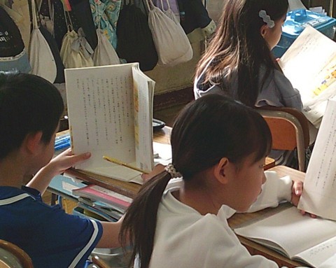 2組の国語では,三年とうげという単元の学習に取り組んでいました。