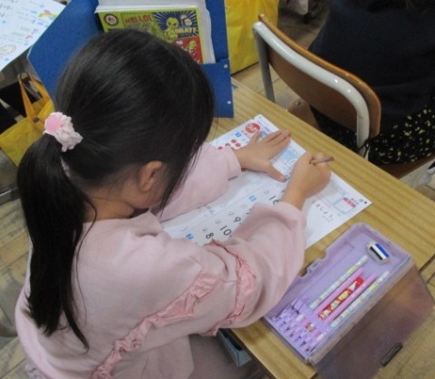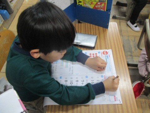 1組の算数です。「たしかめよう」のテストに取り組んでいます。