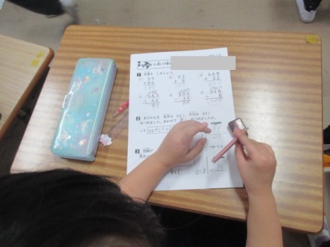 今日は「たしざんのふくしゅう」に取り組んでいます。