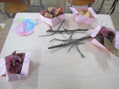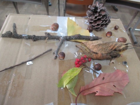 今日は「落ち葉や木のみで作ろう」に取り組んでいます。