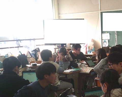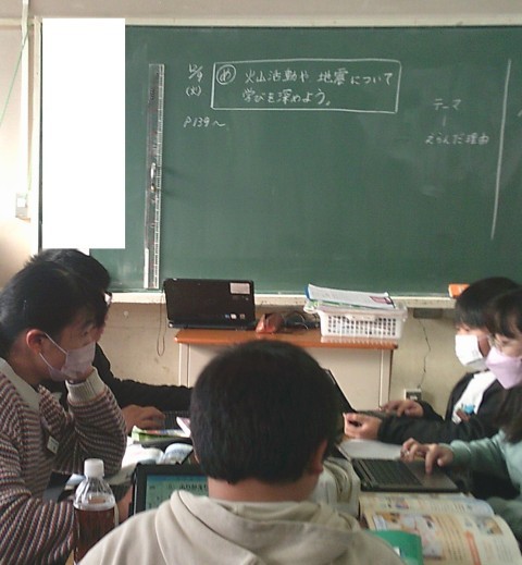 3組の理科では,火山活動や地震活動について自分たちでインターネットを使って調べ,まとめていました。