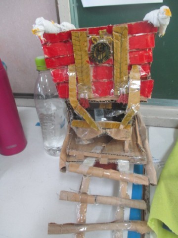 2組の教室にある図工「ダンボールで作って,ためして」の作品です。