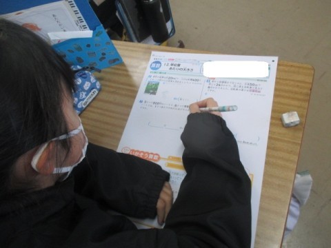 今日は,「単位量あたりの大きさ」のテストをしています。
