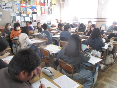 6年 学習のようす 3 公開日 2025/12/10 更新日 2025/12/10 6年生 12月10日(水)3組のようすです。公立大学へ職業見学に行っているお友だちが帰ってくるまで自分の課題をしながら待っています。「修学旅行の絵巻物」「算数の問題」「文集」等に取り組んでいます。 +4