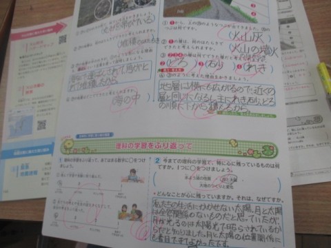 6年 学習のようす 4 公開日 2025/12/10 更新日 2025/12/10 6年生 12月10日(水)4組のようすです。公立大学へ職業見学に行っているお友だちが返ってくるのを待っている間,理科「火山活動」についてテレビを見ていました。みんなが揃ったので,今日は,理科「大地のつくりと変化」のテストを返してもらっていました。 +6